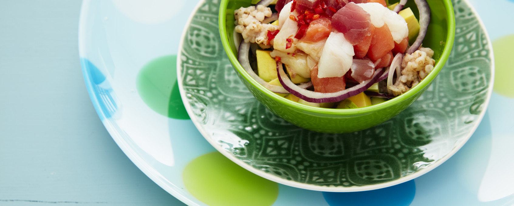 - Divide the barley between the bowls, add the vegetables then the fish and Poké sauce.