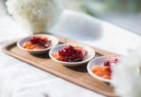 1. Place the avocado flesh, lemon juice and wasabi paste in a bowl and blend with a hand blender to make a smooth cream.