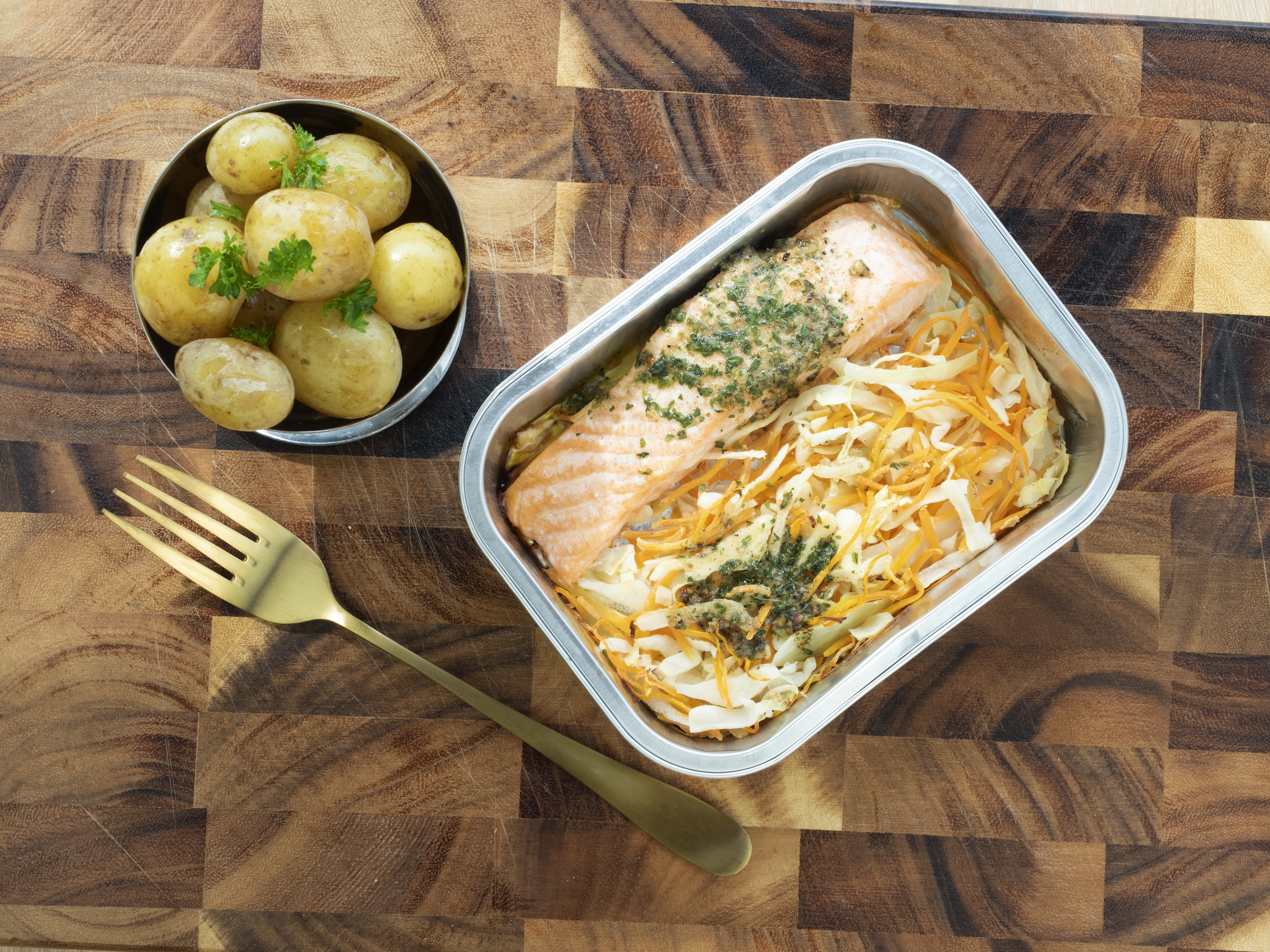 Pastaa, lohta, kermaa ja parmesaanijuustoa