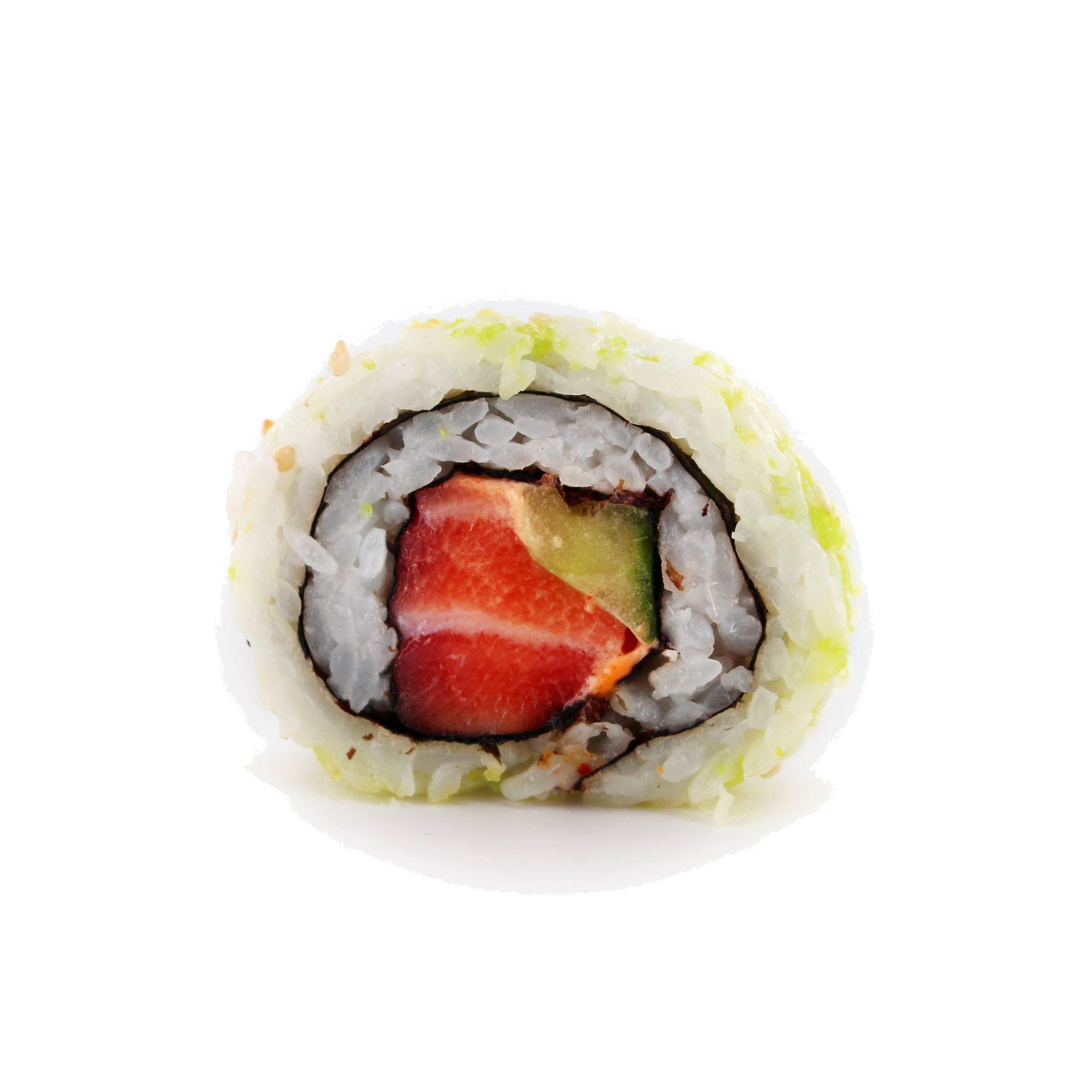 Ainesosat: Riisi (sushiriisi, riisietikka (riisietikkapohja (riisi, alkoholi, suola, saken sakka), sokeri, suola, rypsiöljy), vihannesjauhe (glukoosi, perunatärkkelys, dekstriini, suola, papaiini, proteaasi, amylaasi)). Surimi (surimi 38 % (kala, pääjalkaiset (nilviäiset)), vesi, maissitärkkelys, muunnettu tärkkelys (gluteeniton), auringonkukkaöljy, suola, kananmunan valkuainen, kasvisproteiini (gluteeniton), rapu-uute ja rapuaromi (äyriäiset, soija, nilviäiset), väri (E160c). Nori (merilevä (Porphyra yezoensis, viljelty Japanissa)).