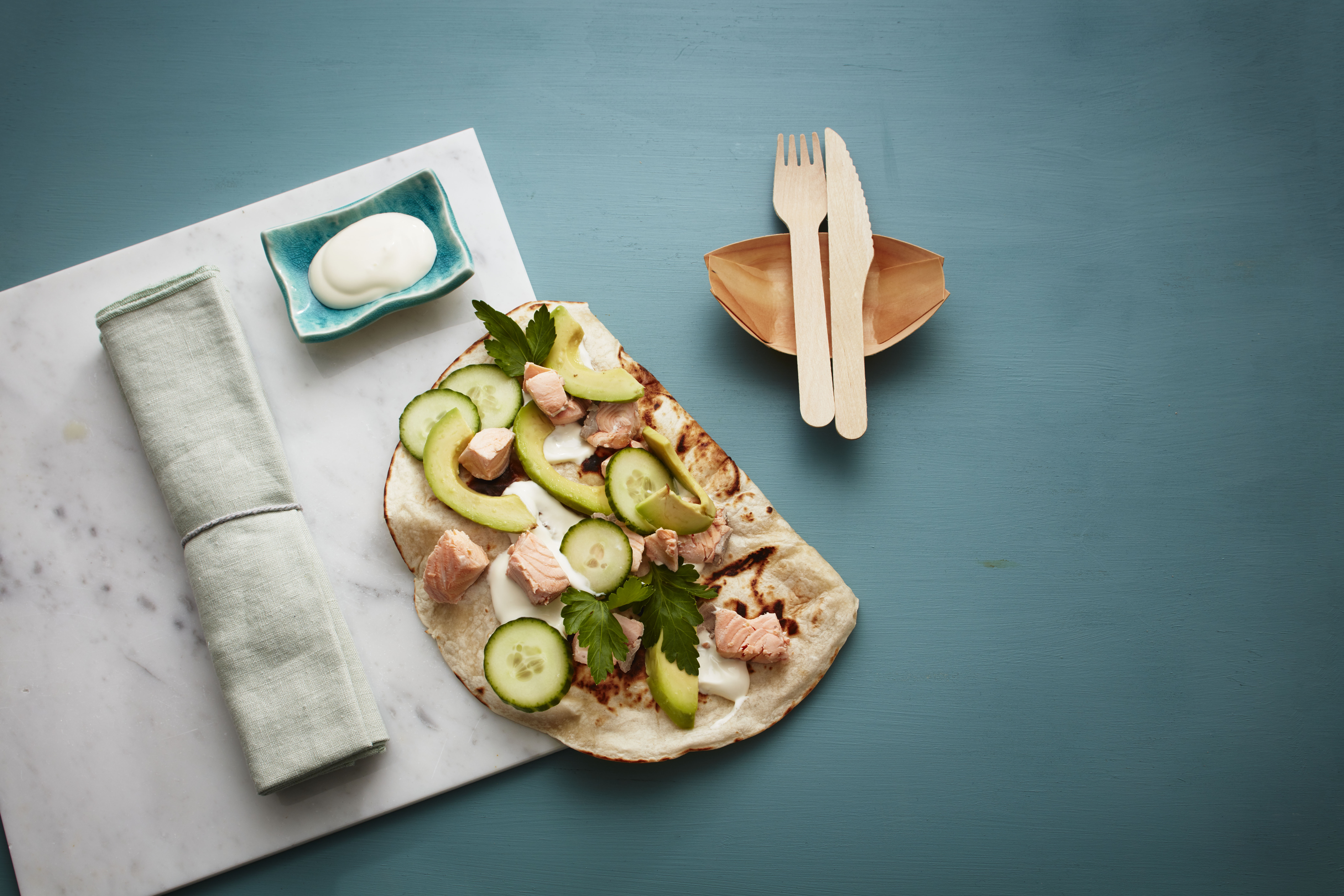 Vi har sagt det før, og sier det igjen: wraps er perfekt til restemat. I denne oppskriften med laks, avokado og crème fraîche får du brukt opp restene fra de andre fiskemiddagene denne uken.