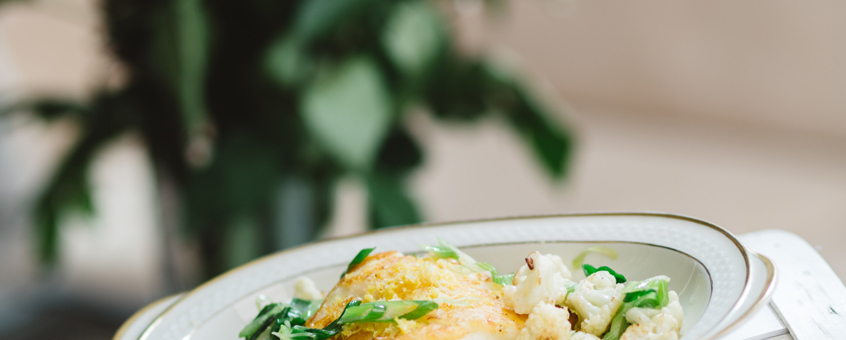 - Kutt blomkålen i buketter og vårløken i skiver. Ha i blomkålen når du er halvveis i stekingen, og stek den sammen med brosmen.