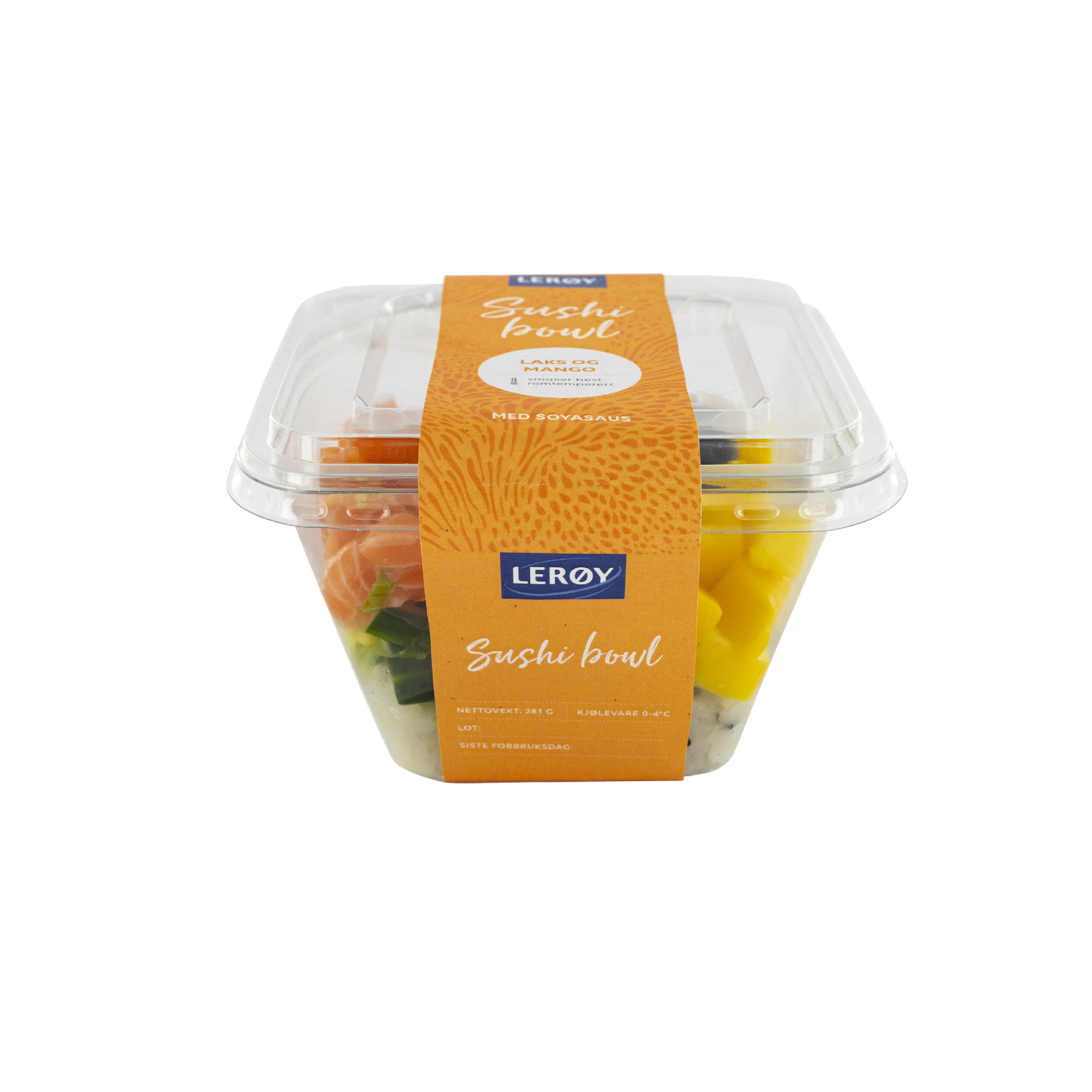 6. Dander sushiris i fire boller. Legg avokado og agurk i en rekke på hver side av bollen. Fordel laksen og pasjonsfrukt over risen. Strø vårløk over.