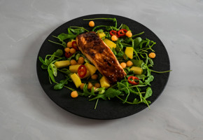 2. Tørk av rekene og hakk i små biter. Bland sammen med oppkuttet vårløk, majonesen, srirachaen, griljermel og soyasausen i en skål.