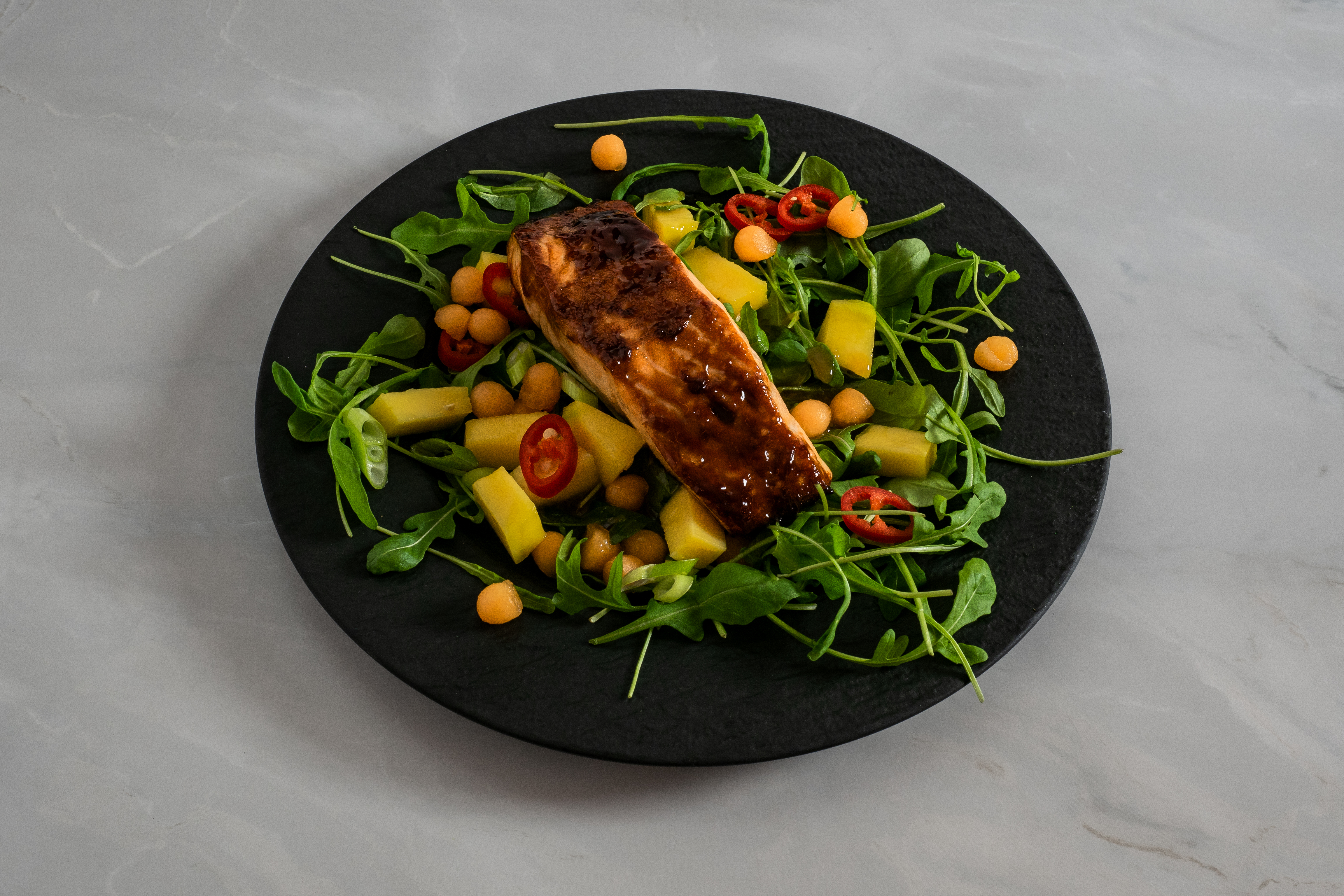 5. Skjær avokadoen i strimler. Legg avokado og fyll på den crispy risen og pynt med en chili-ring. Klar for servering og en crunchy og spicy opplevelse!