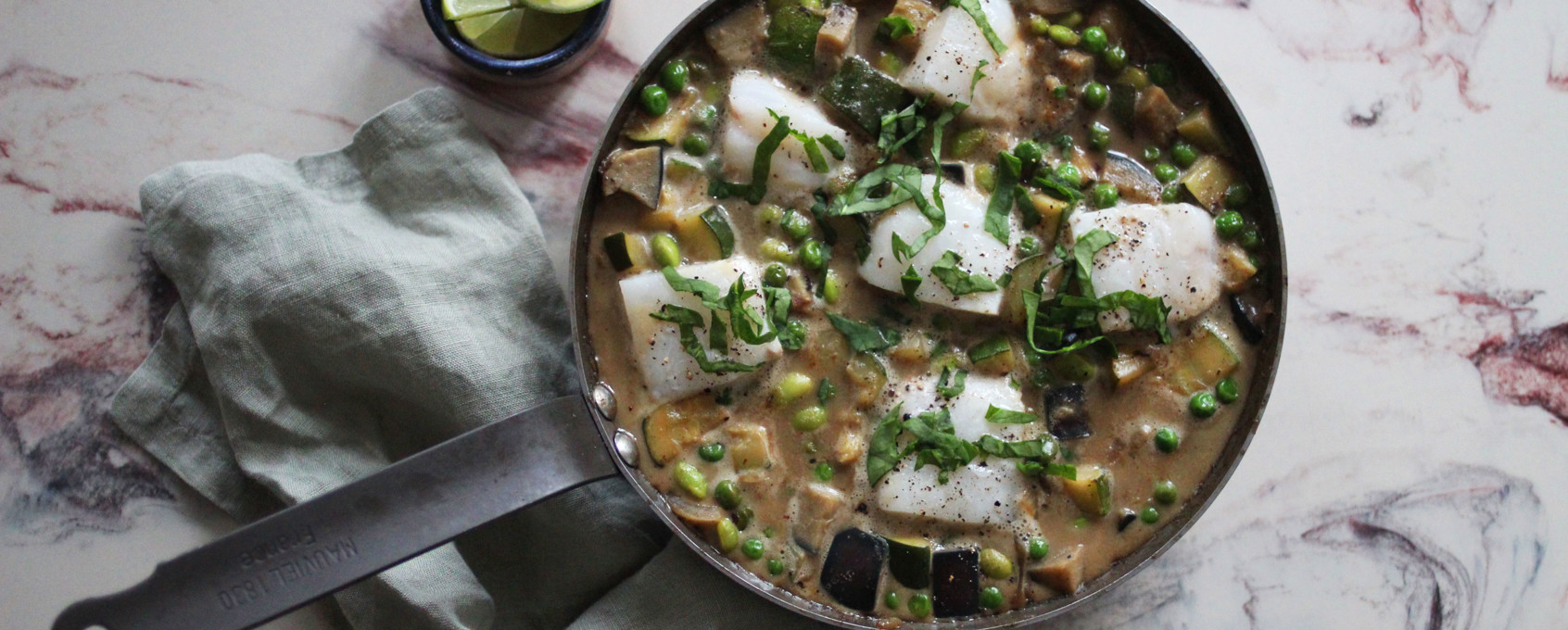 Fremgangsmåte på grønn curry med kokosmelk, torsk og lime: