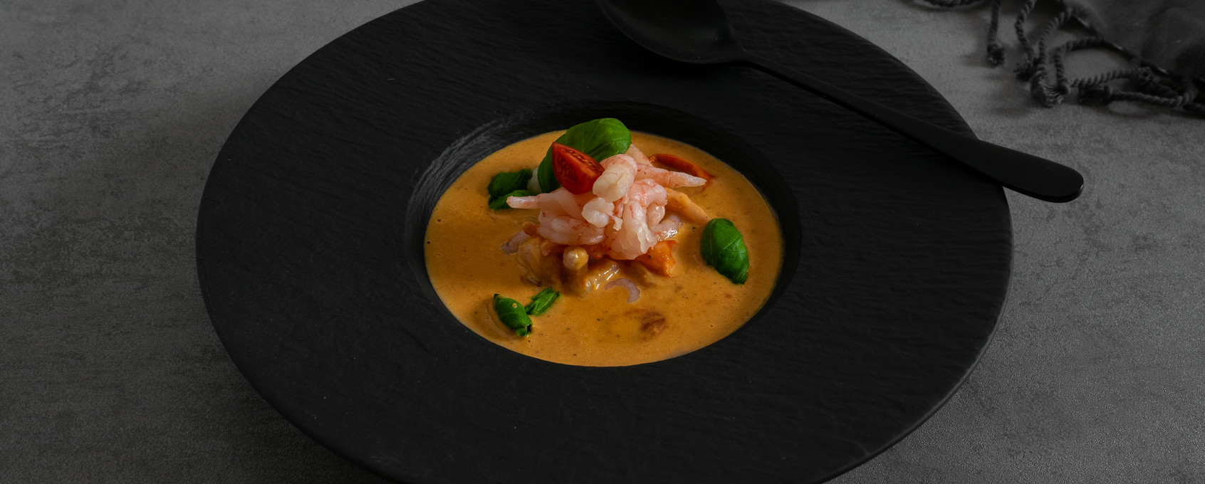 Fremgangsmåte på Kremet rekesuppe med tomat og fiskekraft: