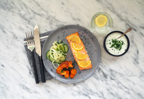 3. Stek laksen på middels varme i 2-3 minutter på hver side. Ha over salt og pepper.