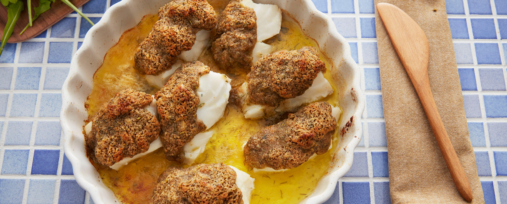Ovnsbakt torsk med brødkrum og urter