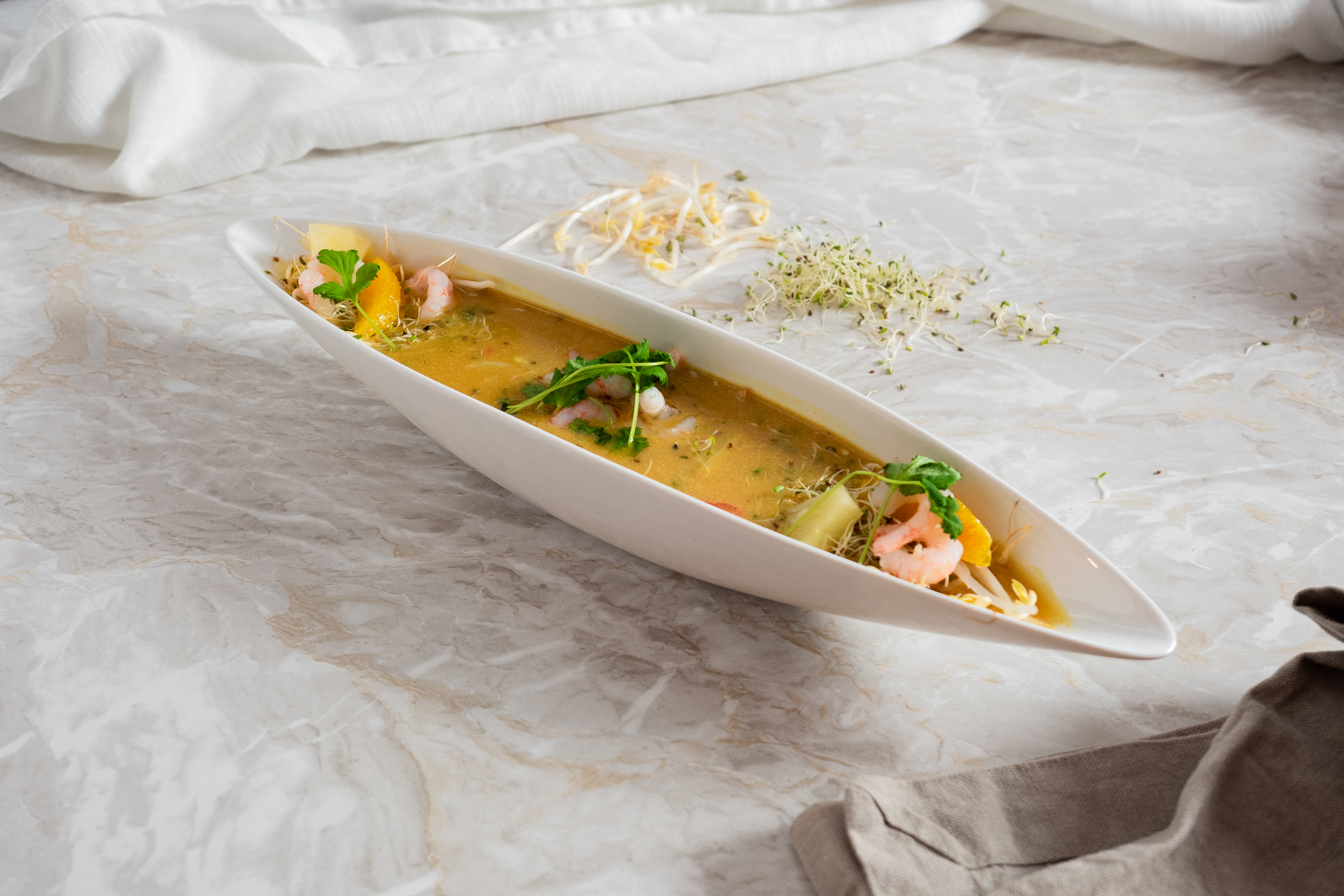 Fremgangsmåte på Rekesalat med mango, koriander, granateple og ananas: