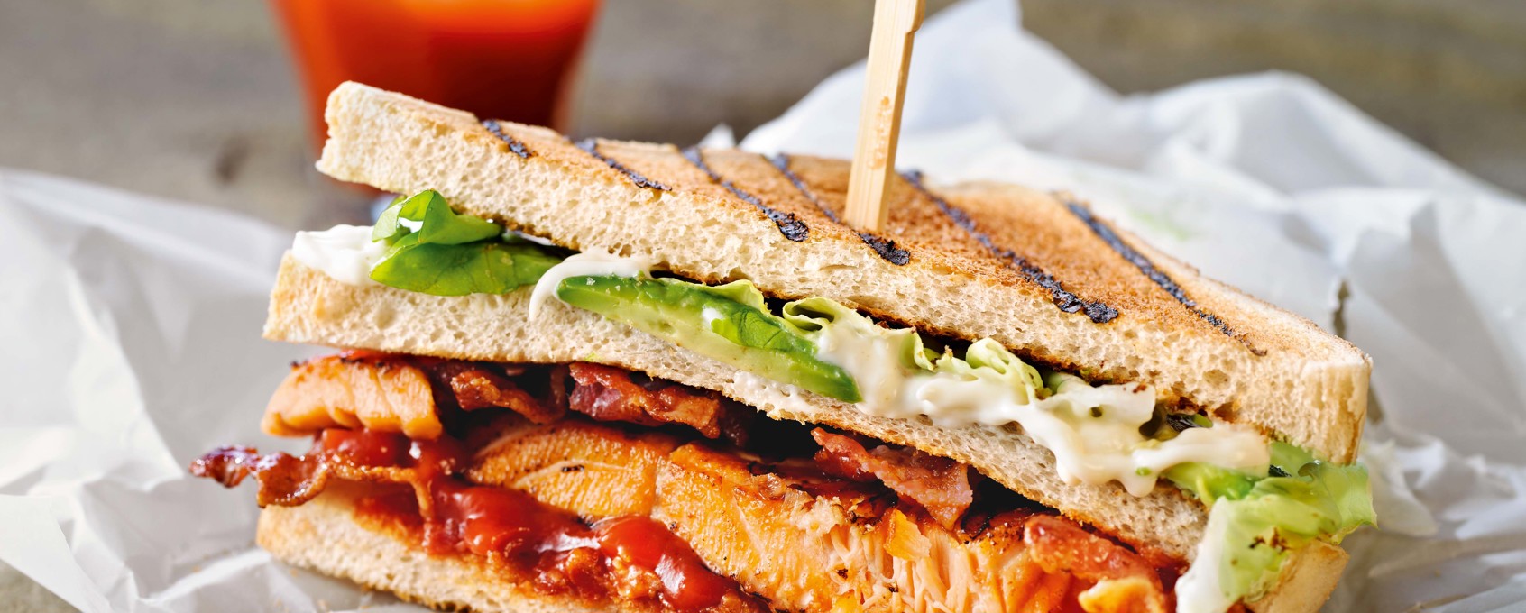 Dört dilim tost ekmeğine ketçap sürülür. Üzerlerine somon ve pastırma eşit şekilde dizilerek dört dilim kızarmış ekmek koyulur. Mayonez, marul yaprakları ve avokado dizilir. Son katman olarak dört dilim tostekmeği de en üste koyularak sandviç haline getirilir.